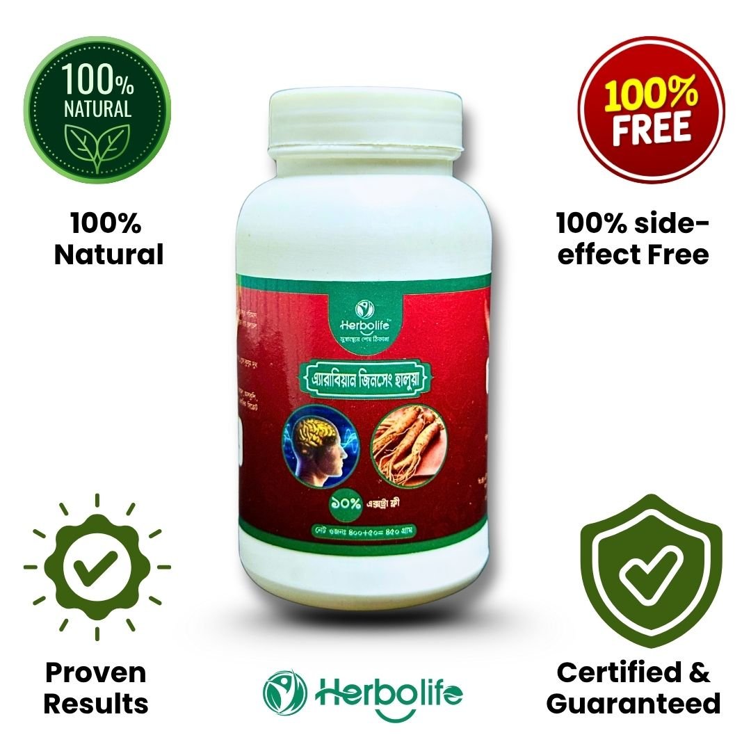 যারা ঔষধ ছাড়া যৌন শক্তি ও স্ট্যামিনা বৃদ্ধি করতে চান, সহবাসের সময় দীর্ঘায়িত করতে চান এবং প্রাকৃতিক উপায়ে সুস্থ থাকতে চান, তাদের জন্য Herbolife “এ্যারাবিয়ান জিনসেং হালুয়া” একটি পরীক্ষিত এবং কার্যকর সমাধান।